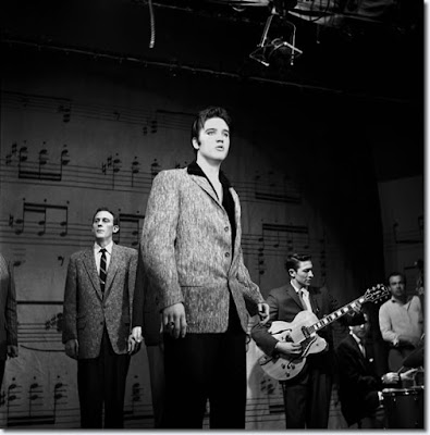 | Da mesma forma, as sete canções interpretadas por Elvis Presley também (nas fotos acima, o ensaio dos números musicais desse mesmo show), entre elas Hound Dog, Love Me Tender, Heartbreak Hotel e Don't Be Cruel. Uma curiosidade, foi nessa apresentação de Elvis que Ed Sullivan teria insistido para que o cantor fosse focalizado da cintura para cima, pois os seus rebolados poderiam chocar a audiência do programa. Ao final das apresentações, Ed Sullivan deu uma espécie de "benção" ao cantor, afirmando que o mesmo era um "rapaz bom e decente", muito embora não pensasse isso alguns meses antes. Isto também significava que Elvis Presley podia adentrar, tranquilamente, nas casas das famílias norte-americanas com um grau menor de rebeldia! |